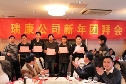 2013年1月底,公司2012年團(tuán)拜聚會在南京萬家歡酒店隆重舉行,全國各地的瑞康同仁齊聚一堂,總結(jié)了12年的工作成就,共同展望公司的美好未來。期間,表彰和嘉獎(jiǎng)了公司表現(xiàn)突出的部門和員工,并頒發(fā)了2011和2012年瑞康初級工程師證書。